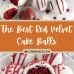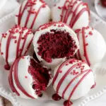 Rich and creamy red velvet cake balls made with cream cheese and coated in white chocolate for an easy no bake style dessert bite.