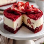 This Red Velvet Strawberry Cheesecake is the kind of dessert that makes any occasion feel extra special. I love how it looks just as good as it tastes—with layers of vibrant color, creamy texture, and sweet fruit in every bite. Whether I’m baking for Valentine’s Day, a dinner party, or simply craving something beautiful, this cheesecake never disappoints.