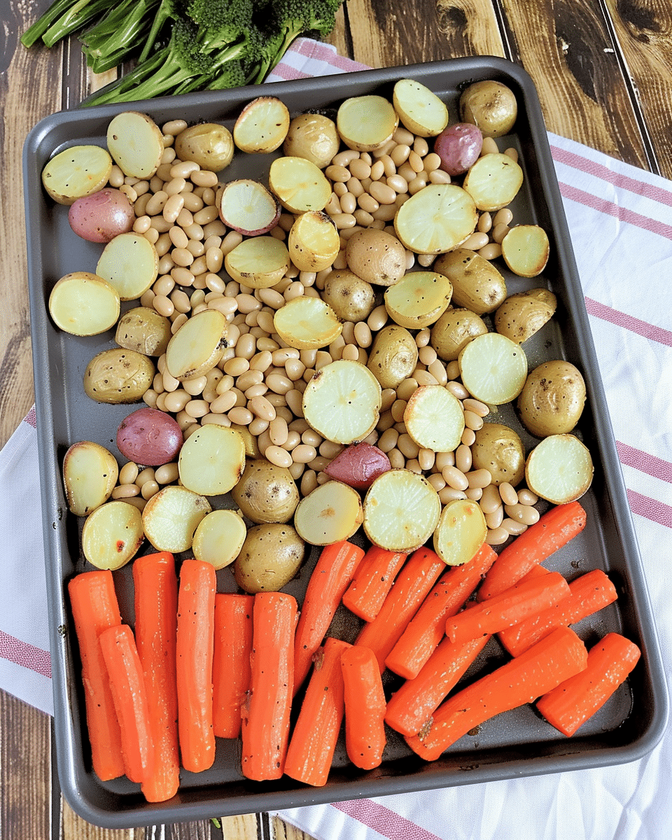 I love how versatile and low-effort this recipe is. Everything gets tossed with olive oil and herbs, then roasted on a single pan—perfect for busy nights or when I want something healthy and flavorful. The natural sweetness of the carrots, the creamy texture of red potatoes, and the slight crunch of green beans all come together beautifully with just a handful of seasonings. It’s a dish I can pair with just about any main course, from grilled chicken to roasted fish.