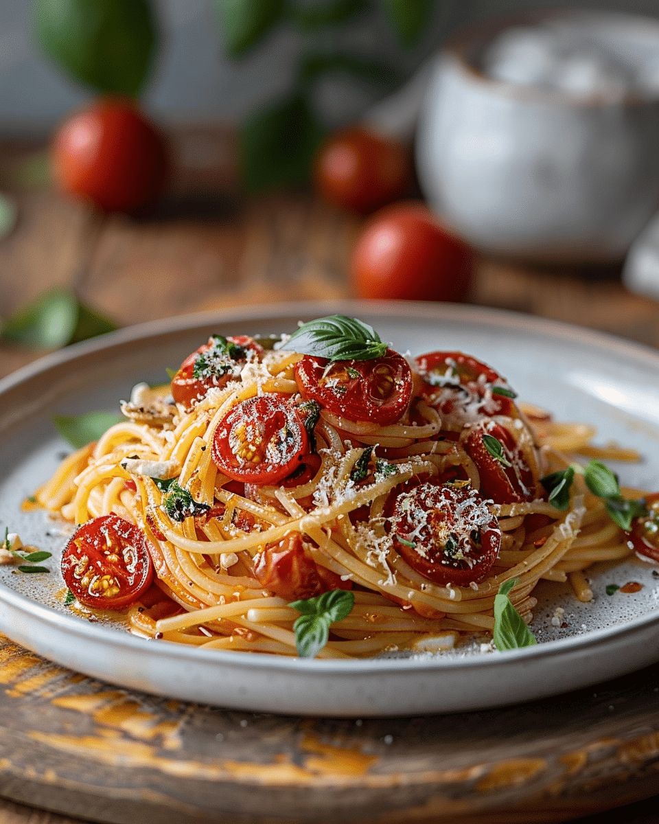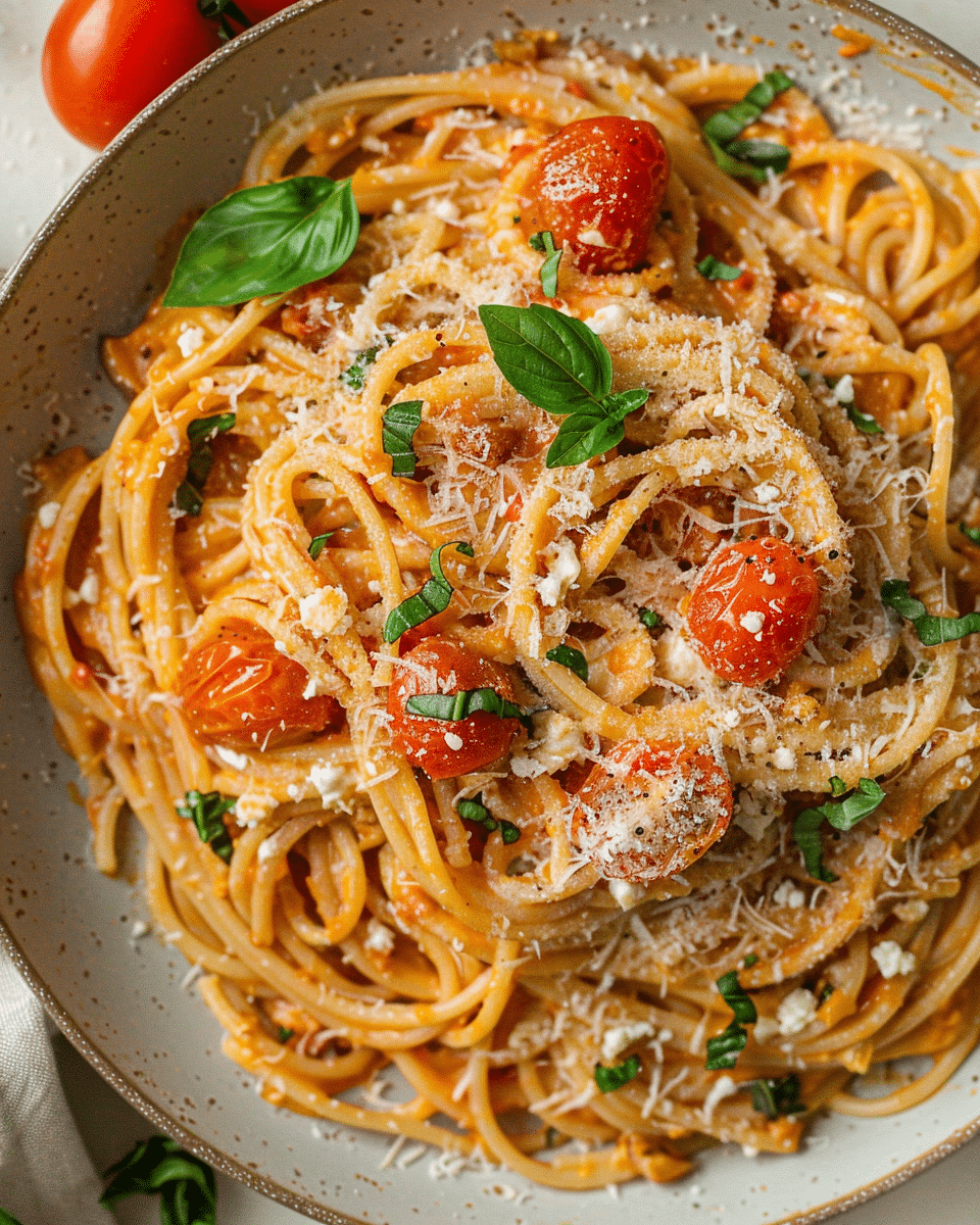 This roasted tomato and garlic ricotta pasta is one of my favorite easy meals when I want something comforting and flavorful without too much effort. I love how the roasted ingredients and creamy ricotta come together into a smooth, rich sauce. It’s a simple dish that always feels satisfying and fresh whenever I make it.