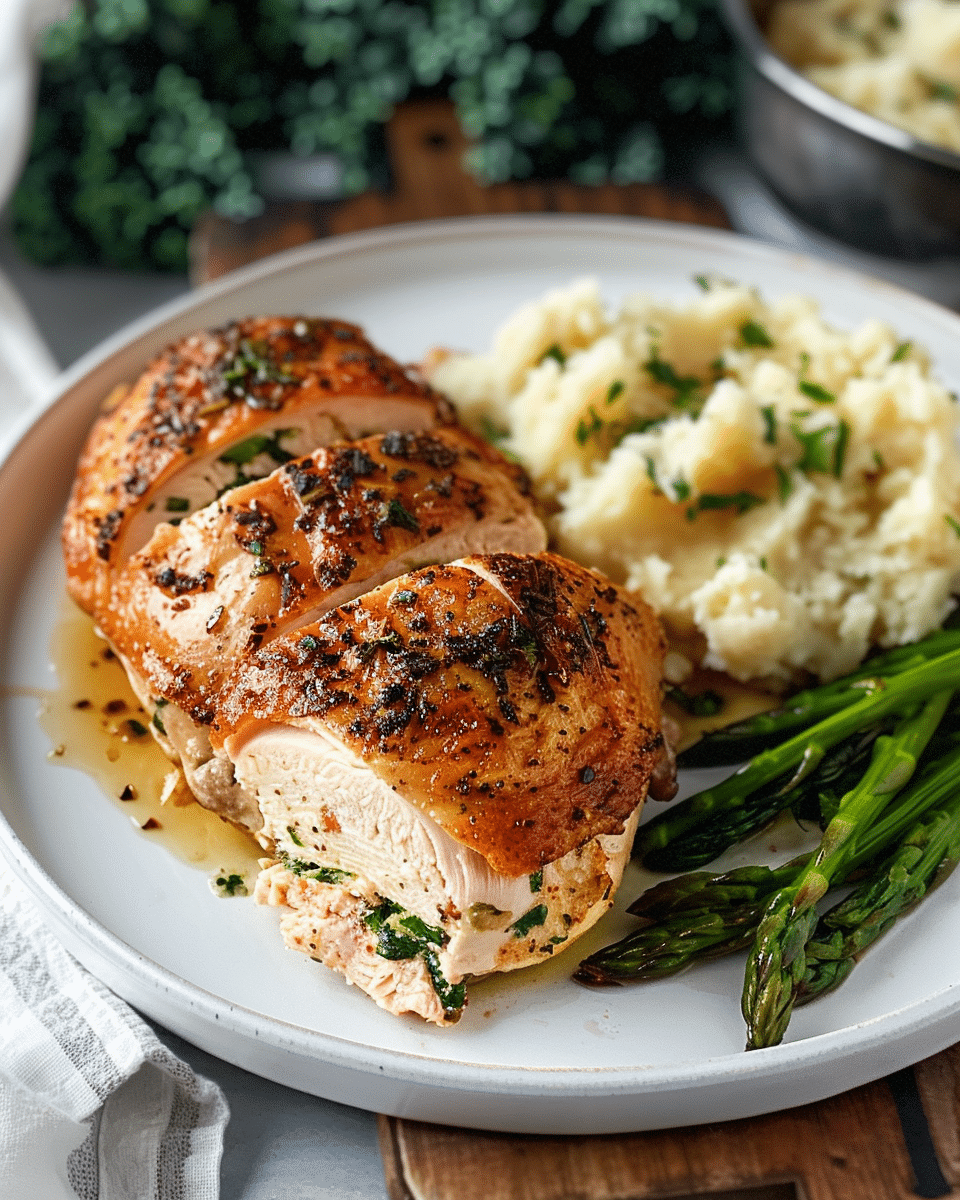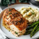 I love this recipe because it transforms basic chicken breasts into something truly special. The filling is a creamy, garlicky, cheesy blend that pairs beautifully with the lemon zest and thyme. The chicken stays tender and juicy, and brushing it with lemon butter gives the outside a golden, flavorful finish. It’s a dish that feels fancy but is surprisingly easy to make.