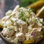 A creamy and tangy chicken salad made with dill pickles, Greek yogurt, and Dijon—perfect for quick lunches, meal prep, or a flavorful sandwich filling.