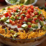 This seven layer taco dip is one of my favorite party snacks because it’s easy, colorful, and always disappears fast. I love how simple it is to assemble while still looking impressive, making it a reliable go-to for gatherings and casual get-togethers.