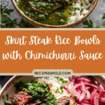 These Skirt Steak Rice Bowls are packed with flavor—tender seared steak, fluffy rice, and bright cilantro chimichurri make the perfect restaurant-style meal at home.