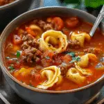 This creamy slow cooker tortellini soup is rich, hearty, and loaded with ground beef, cheese tortellini, and tangy tomatoes—pure comfort in a bowl!