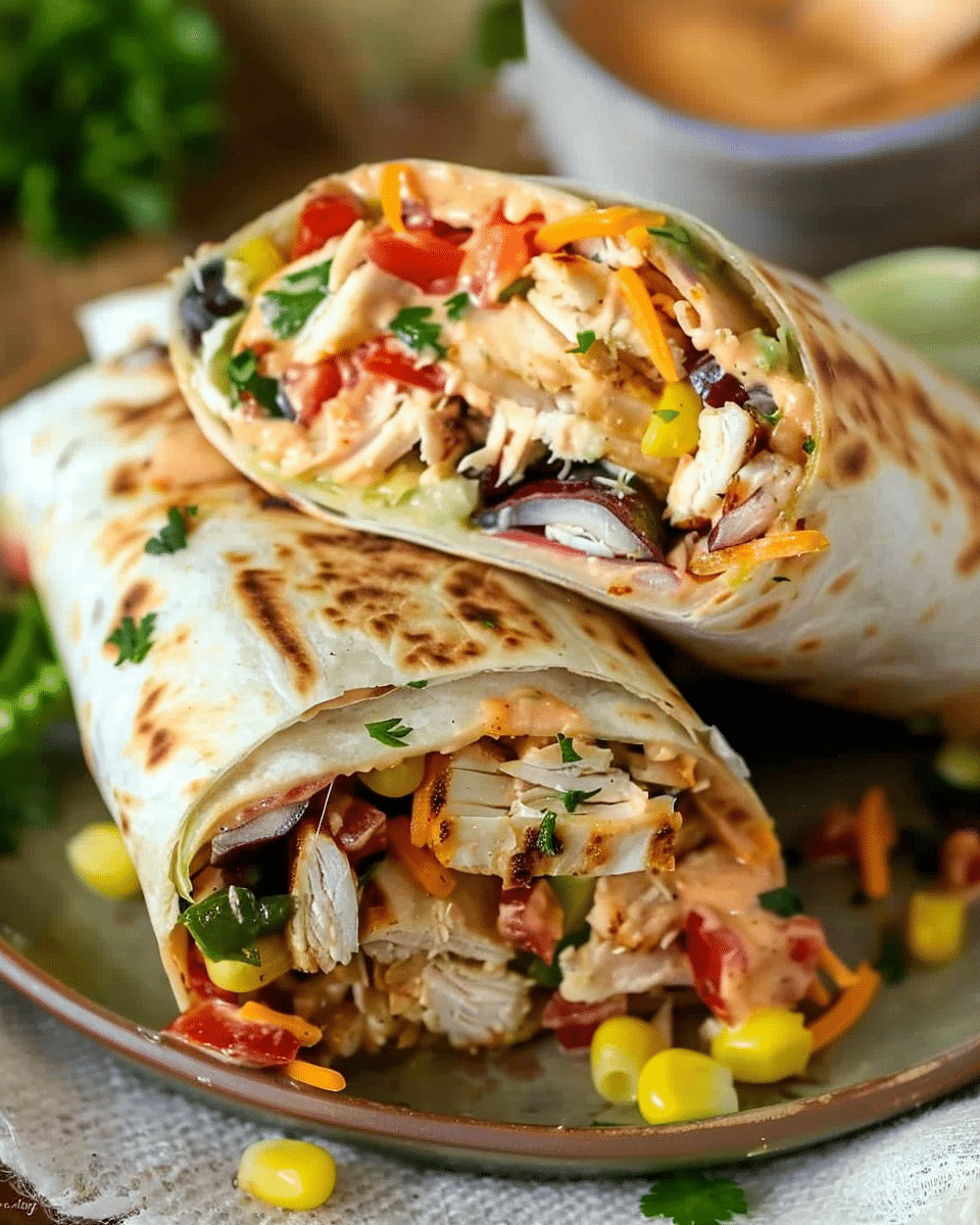 This bold and flavorful Southwest Chicken Wrap is packed with seasoned chicken, rice, black beans, corn, veggies, and a creamy chipotle crema—perfect for lunch or dinner!