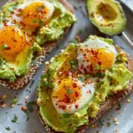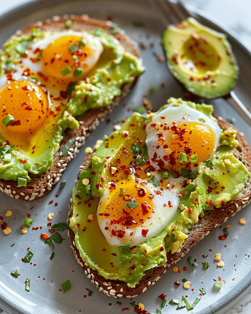 The Best Spicy Avocado Toast with Poached Egg loaded with creamy avocado, perfectly poached eggs, and a spicy crunch. A café-style breakfast you can make at home.