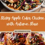 Sticky Apple Cider Chicken with Autumn Slaw is the perfect dish for embracing fall flavors. With its juicy chicken, caramelized cider glaze, and fresh, crunchy slaw, this recipe brings comfort and color to my dinner table. It’s simple enough for a cozy weeknight and special enough for a holiday gathering. Once I made it, it became an instant autumn favorite.