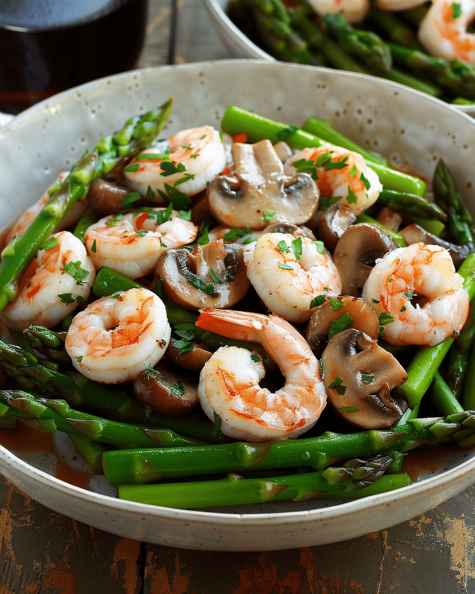 The best quick stir-fry with tender shrimp, crisp asparagus, and savory mushrooms. A light, low-carb dinner that’s ready in 25 minutes—perfect for weeknights!