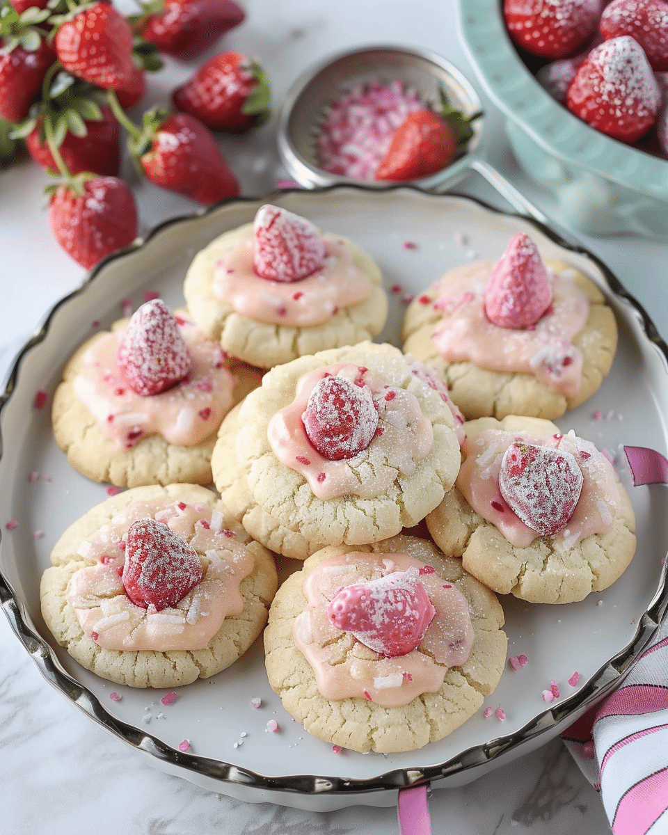 I love how cheerful and simple these cookies are. They’re easy to make, kid-friendly, and incredibly festive with sprinkles. The strawberry-flavored chocolate kiss adds a unique twist to the classic blossom cookie. Whether I’m baking for a party, holiday, or just a fun treat, these cookies always brighten the table and get rave reviews.