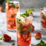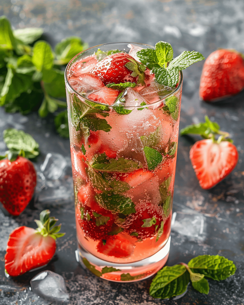 Refreshing strawberry mojito mocktail with mint, lime, and sparkling soda for a quick and fruity drink perfect for any occasion.