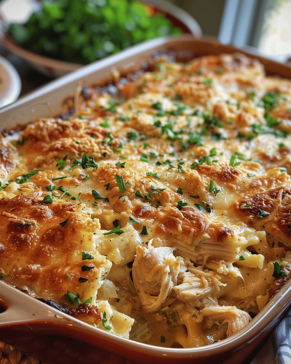 This creamy, cheesy casserole is made with tender rotisserie chicken, egg noodles, and a golden breadcrumb topping—perfect for an easy weeknight dinner.