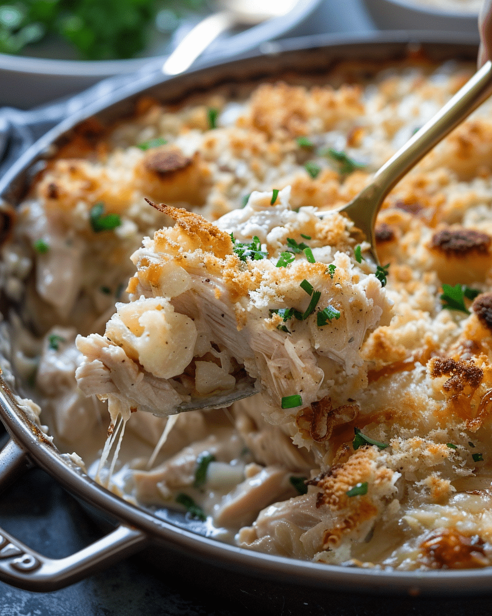 Bake for 30–35 minutes, or until chicken is cooked through (165°F internal temp) and topping is golden brown.