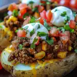 I love how this recipe lets me enjoy all the bold flavors of tacos in a completely different way. The baked potato acts as a warm, fluffy base for the taco meat, soaking up every bit of juicy, seasoned flavor. It’s also easy to prep ahead, perfect for using up leftover taco ingredients, and everyone can top theirs exactly how they like.