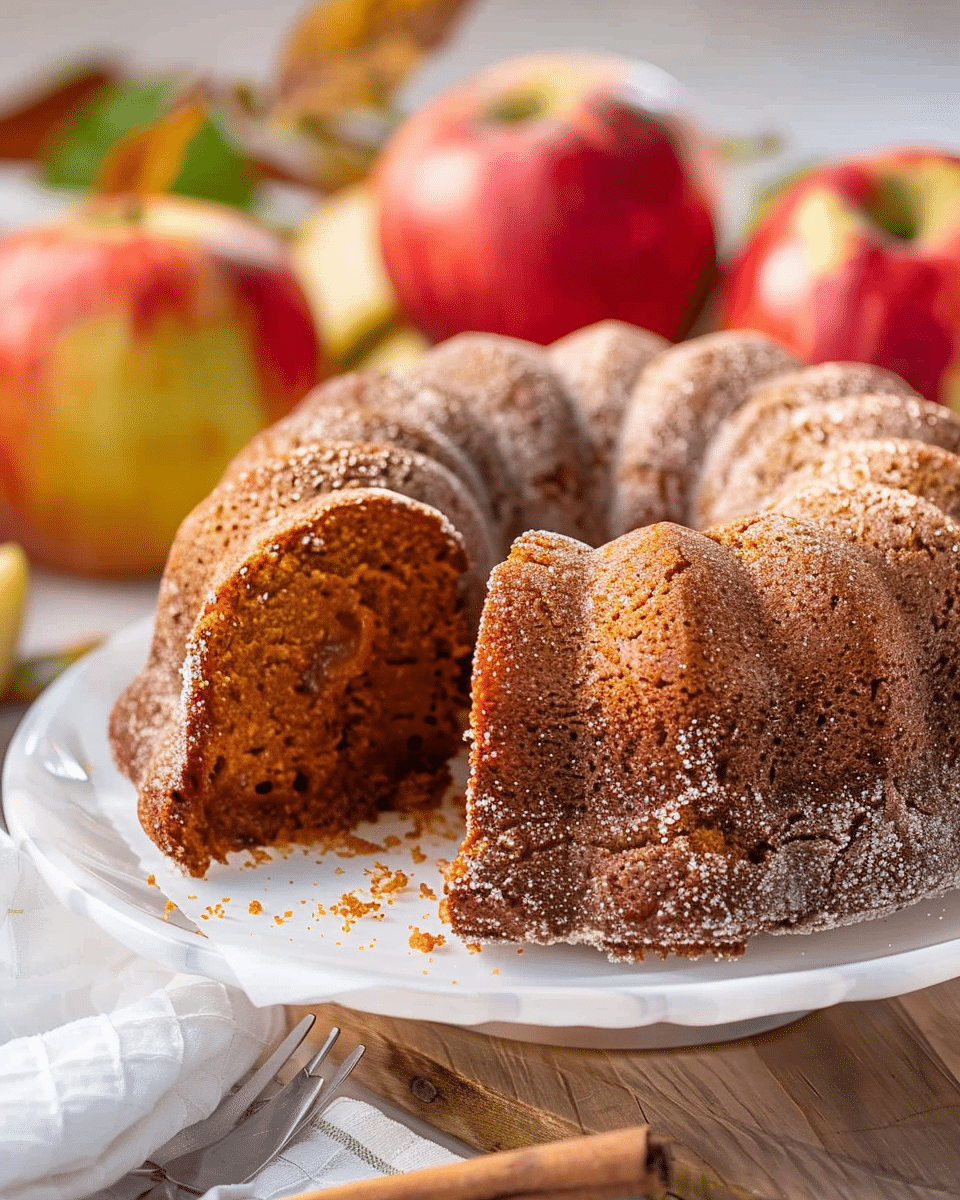 I love this recipe because it captures everything wonderful about apple cider donuts in a show-stopping cake form. The combination of apple cider, grated apples, and warm spices creates a flavor that’s both nostalgic and comforting. The sour cream keeps the cake extra moist, while the cinnamon-sugar coating gives it that familiar donut shop touch. It’s easy to make, looks impressive, and fills my kitchen with the best autumn aroma.