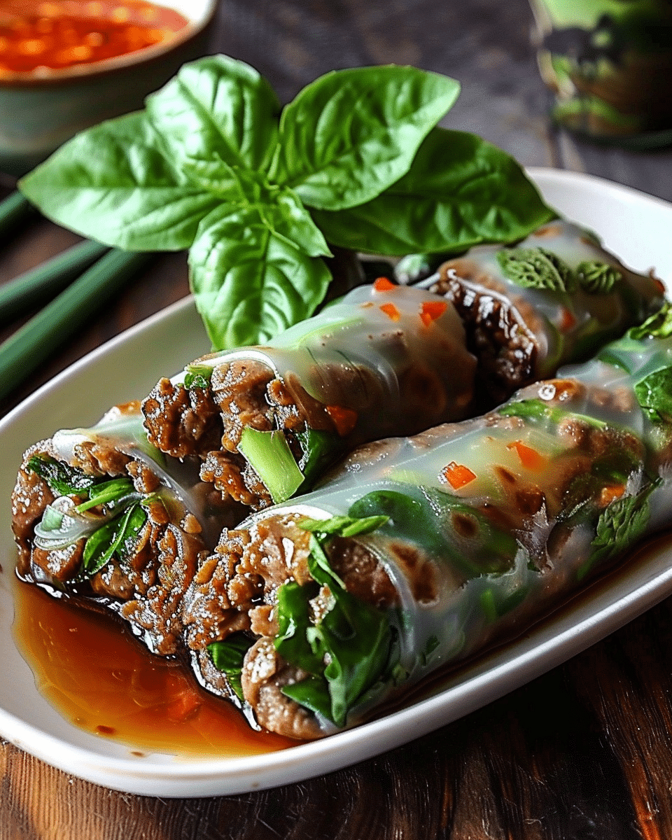 These Thai basil beef rolls are bursting with fresh flavor! Tender ground beef, crisp veggies, and fragrant basil wrapped in soft rice paper—an easy, healthy appetizer or light meal.