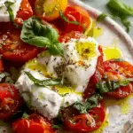 Serve and Enjoy: I serve everything immediately, with the garlic toasts on the side. It’s perfect for scooping up tomatoes, burrata, and all that delicious olive oil and balsamic.
