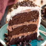 I use a sharp knife dipped in hot water, then wiped dry before each slice. This helps cut through the chocolate cleanly without dragging crumbs.